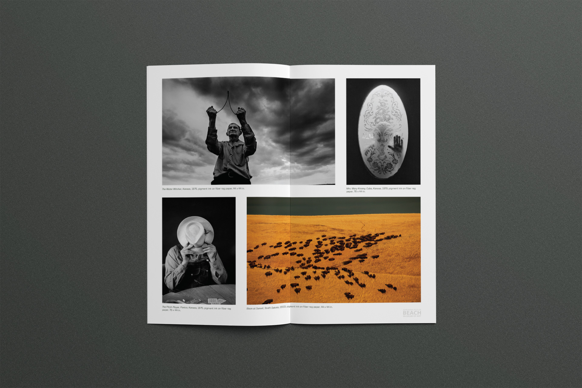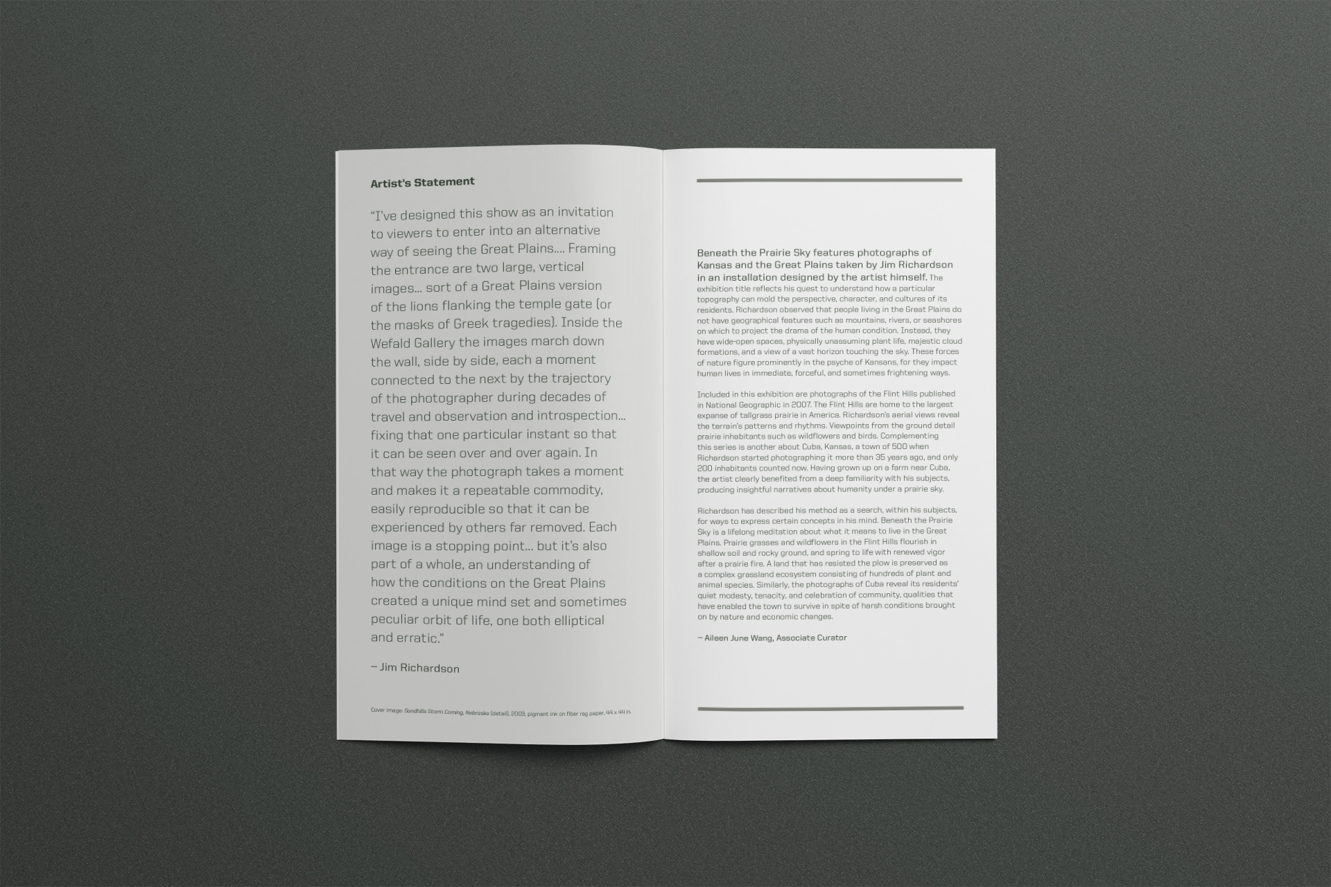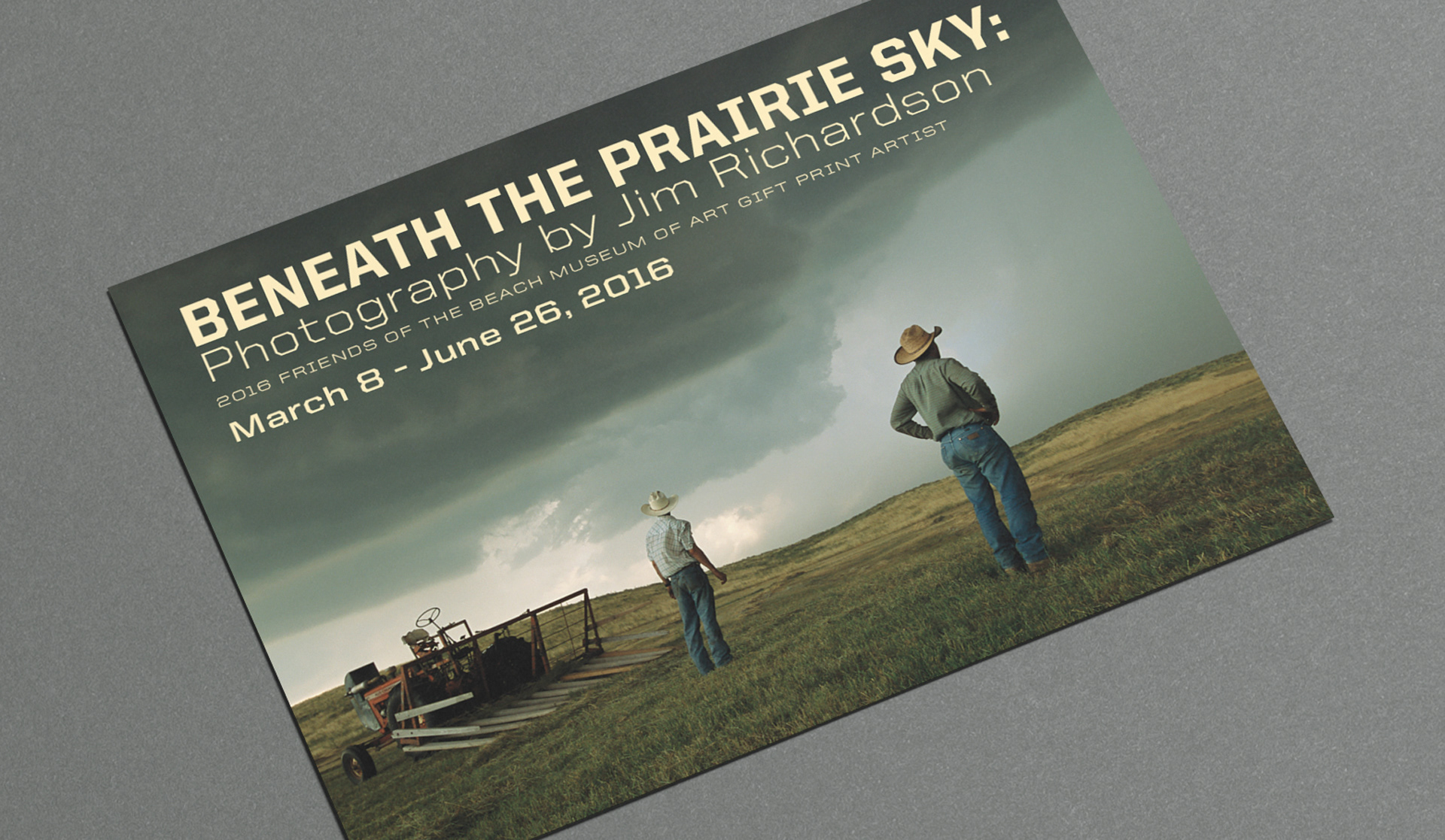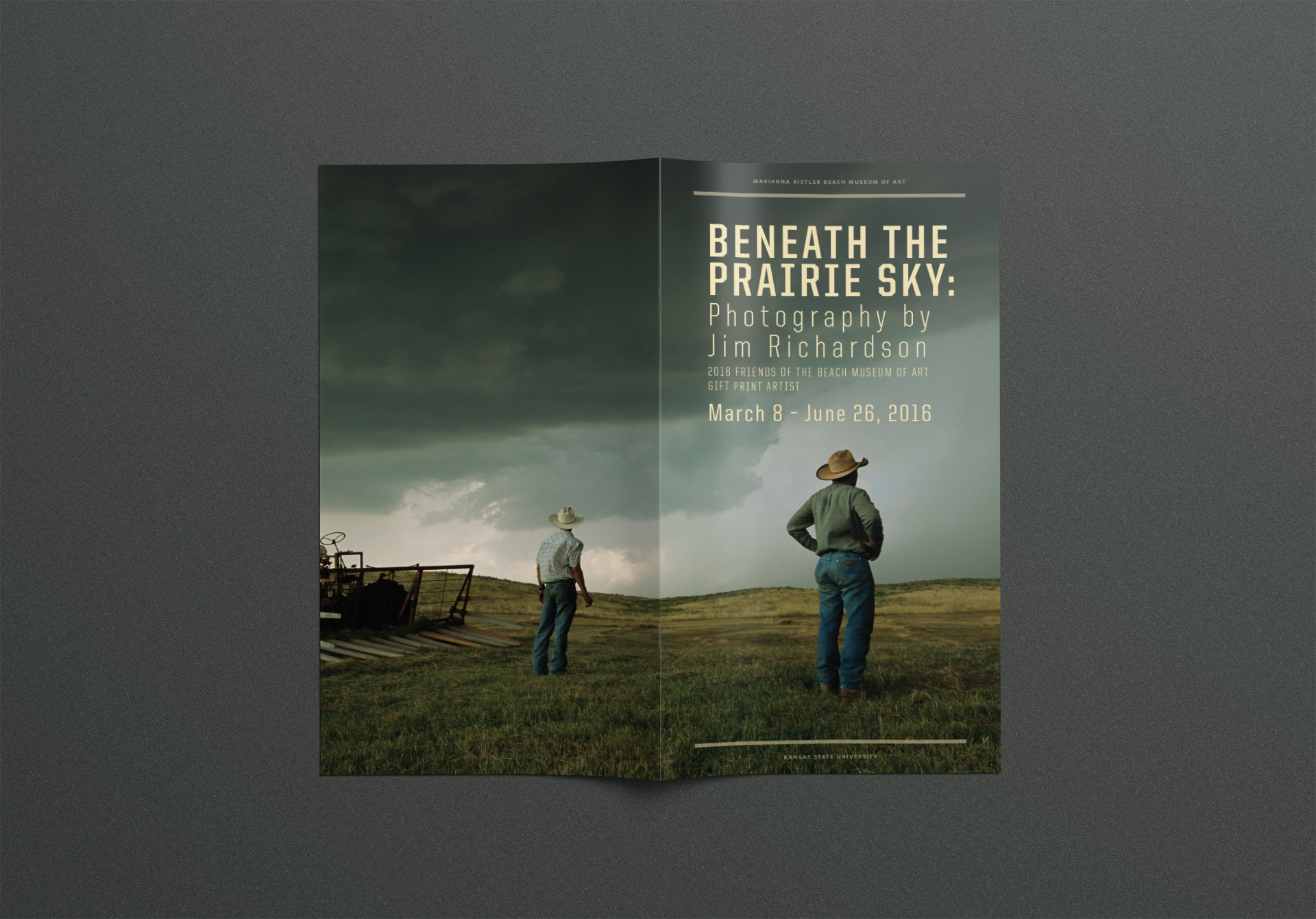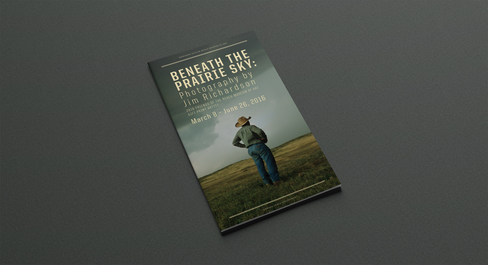 Visual system for "Beneath the Prairie Sky: Photography by Jim Richardson" exhibition at the Beach Museum of Art in Manhattan, KS.